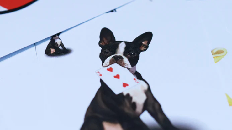 Fini les as, 2, 3, 4, 5, 6, …, valet, dame, roi… Les enfants choisiront un os, un lion, un singe, un coeur, … le tout au format poker et au dos bicycle rider back rouge.