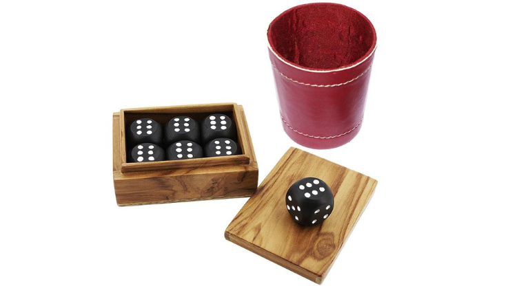 Aussi impossible que cela puisse paraître, cela fonctionne tout seul. Si vous savez lancer un dé, vous pouvez réaliser cet effet. Il est rendu encore plus spécial par les matériaux de haute qualité utilisés : une boîte en teck faite à la main, une coupe en cuir et de gros dés noirs. Vous serez ravi de l’impression professionnelle que cela crée.