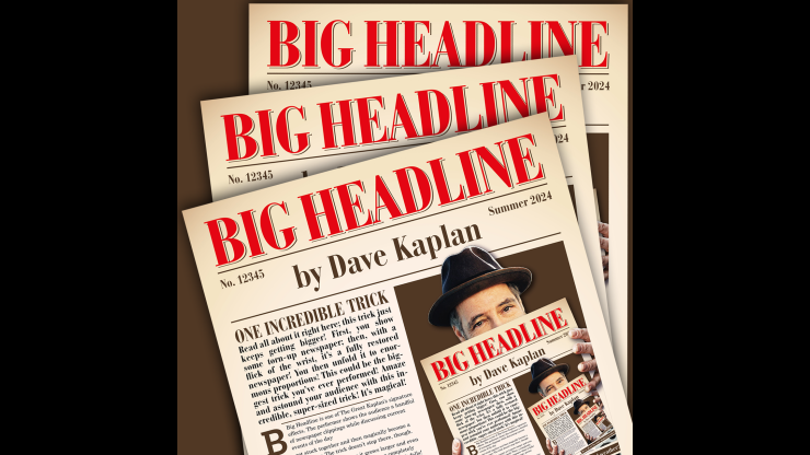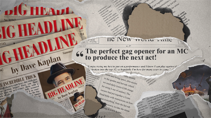 Big Headline est parfait pour présenter un artiste sur scène de manière surprenante. Vous pouvez l’utiliser pour produire le PDG ou l’invité d’honneur de votre prochain concert d’entreprise. C’est la couverture parfaite pour tout numéro de scène qui a besoin d’un gag comique avant de faire un changement rapide. Vous n’avez même pas besoin de faire un autre tour avec, le journal qui pousse est un gag hilarant à lui tout seul. Plusieurs méthodes sont enseignées afin que vous puissiez le charger à partir d’une aile de scène, de votre valise, ou même d’un chargement corporel avec le gimmick caché à l’intérieur de votre costume. Il est peu encombrant et très efficace. Les professionnels du monde entier ont ajouté cet effet à leurs spectacles et obtiennent d’excellentes réactions de la part de leur public. Réalisez un effet qui vous fera littéralement paraître dans les journaux lorsque vous présenterez Big Headline de Dave Kaplan.