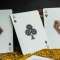 La pyramide symbolise la toute-puissance des dieux. C’est ainsi que son illustre éclat doré est représenté sur une carte de premier ordre : l’As de pique. Le dos de la carte est orné de scarabées ailés. Il s’agit d’un charme commun cousu aux momies pour protéger le passage des morts dans l’au-delà. D’autre part, la face incolore et sans bordure de la carte illustre le mythe de la création de l’Égypte ancienne : l’univers a commencé par être un vide sans vie.