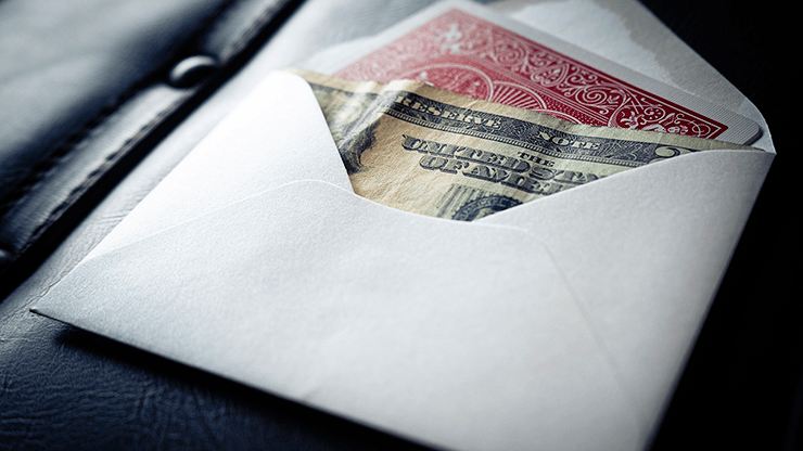 Une enveloppe ordinaire est librement présentée sur tous les côtés et est placée sur la table. Une carte est sélectionnée, signée et ensuite perdue dans le jeu. Vous affirmez qu’à l’intérieur de l’enveloppe se trouve un billet de 20 dollars (n’importe quelle devise peut être utilisée). Si vous ne trouvez pas la carte, ils peuvent garder l’argent.