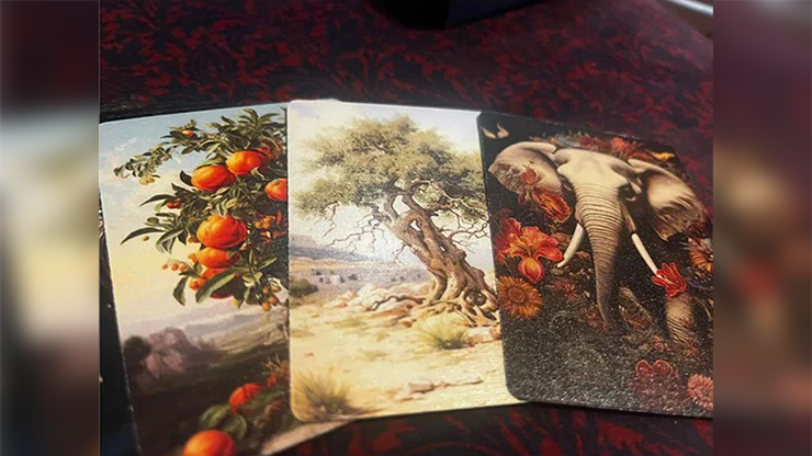 Le coffret comprend les cartes illustrées dans une boîte à cartes personnalisée, ainsi que deux tirages représentant les oiseaux de paradis d’un c?’té et le poème de l’autre, le tout rangé dans une boîte de rangement plus grande, fabriquée à la main, et comprend l’explication complète, ainsi que des manipulations en bonus, enseignées par Liam Montier.