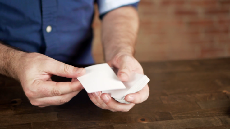 Le magicien sort un jeu de cartes mais découvre qu’il s’est trompé de jeu par erreur. Le jeu semble être vierge sur le dessus et le dessous, mais il est en fait imprimé avec de l’encre psychique. Si le magicien pense à une carte à jouer et coupe le jeu, la carte nommée apparaît, mais le dos est toujours vierge. Si le magicien pense au dos d’une carte et coupe le jeu, le dos apparaît, mais la face est vierge. En se concentrant, le magicien peut penser à tout un jeu de cartes à la fois, et lorsque le jeu est étalé, chaque dos et chaque face sont imprimés. Aussi mystérieusement qu’elles ont été imprimées, les cartes s’effacent pour redevenir vierges d’un bout à l’autre.