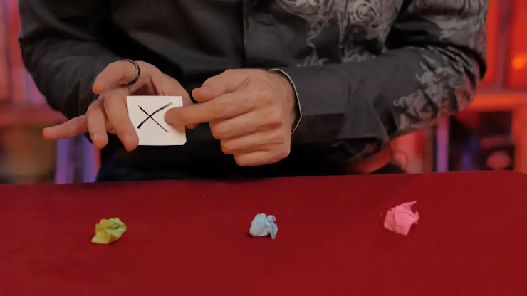 Chair Test (presque) parfait Une routine de Chair Test nécessitant presque aucun trucage. Pas de Swami, pas de switchs d’enveloppes ni d’enveloppes truquées, juste 4 enveloppes, 4 choix, et une prédiction incroyable. Taha présente cette routine comme son final dans ses spectacles en entreprise depuis plusieurs années, et à elle seule, cette routine vaut le prix de la conférence.